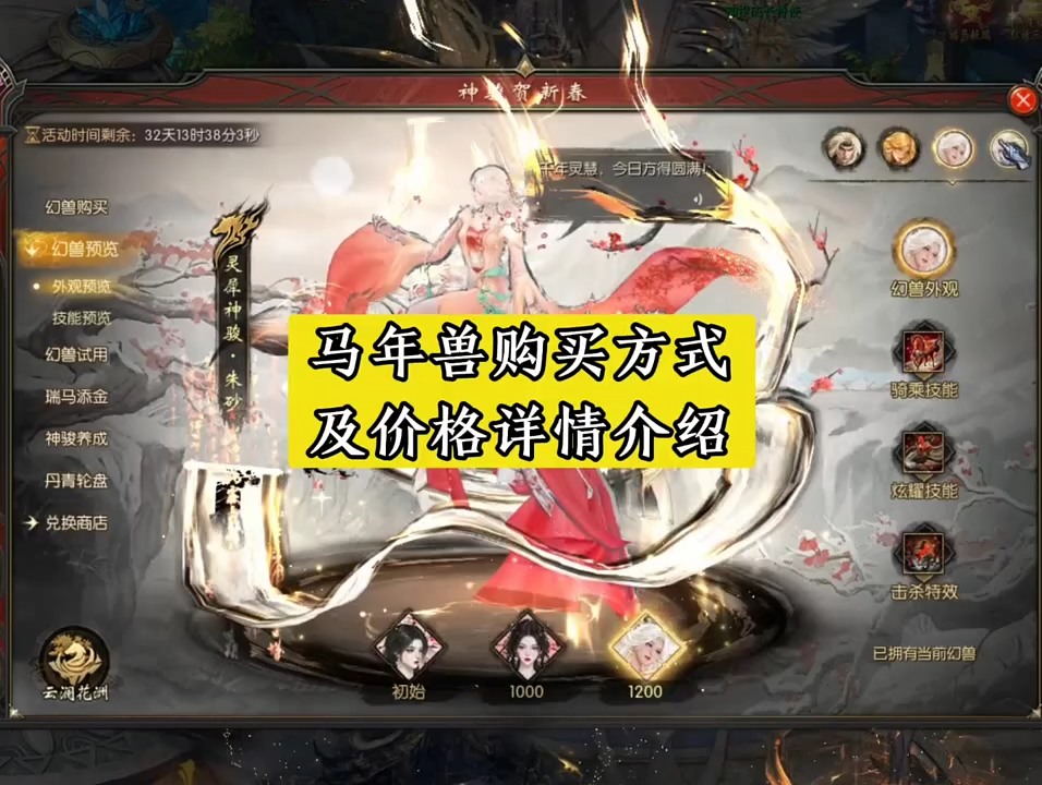 1月23日维护后~2月24日24点,马年幻兽礼包6.5折限时上架,单只神骏历年原价13888点魔石,现仅售8999点魔石。