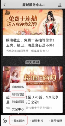 除了找回帐号密码,魔域帐号中心还有其他更多更便携的自助服务: