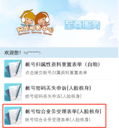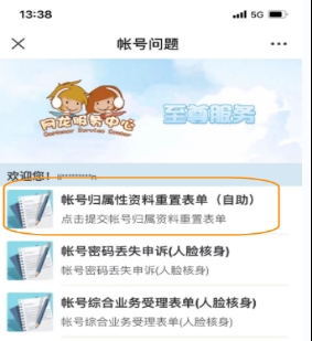 第二步:选择“我的服务”下的“帐号问题”。如果用户还未绑定帐号,将进入首次绑定界面。