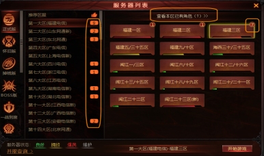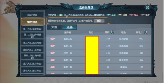 “选择服务器”界面,左侧的“角色查询”,查询有角色的区服(仅显示主号)。