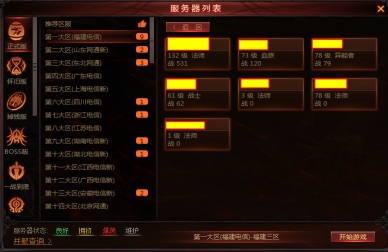 通过登录平台登录游戏,点击“更换区服”,当在某区服中有创建角色时,该区服左上角会显示你所创建的角色数量,鼠标悬浮在该区服上后,会弹出在该区服中的角色详情列表。